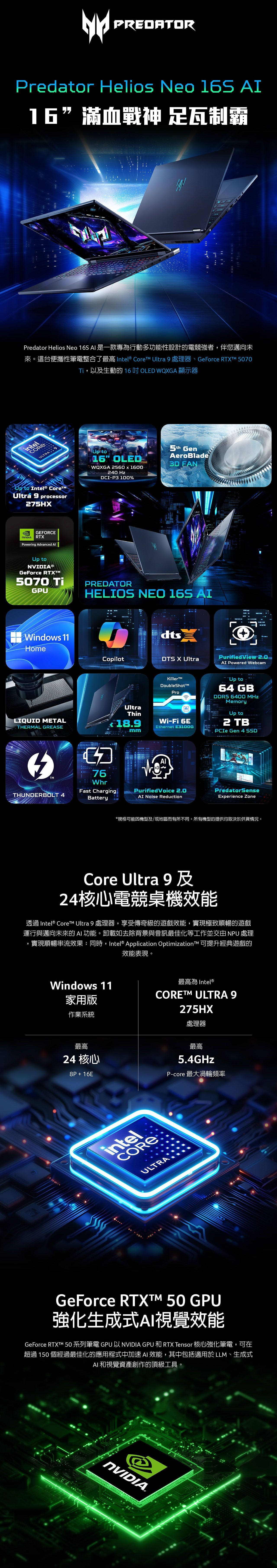 處理器:Intel® Core™ Ultra 9 processor 275HX