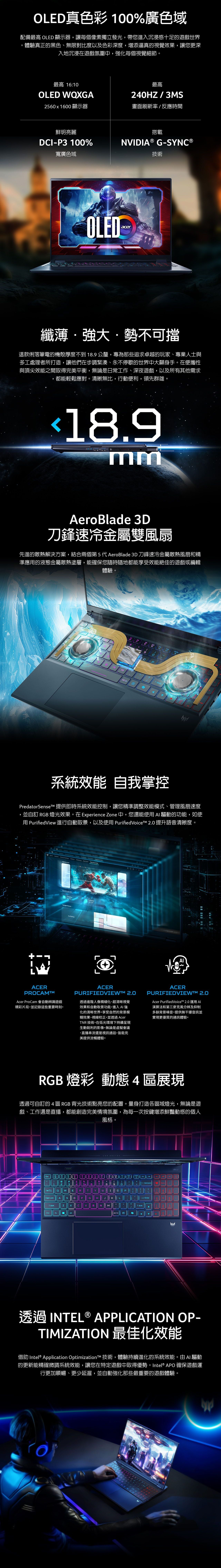 螢幕:16吋 ,16:10,60~240Hz,OLED,鏡面
