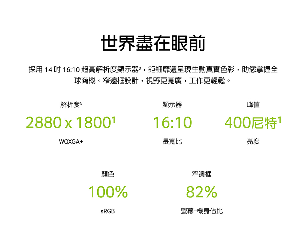 LCD 尺寸:14" WQXGA IPS
