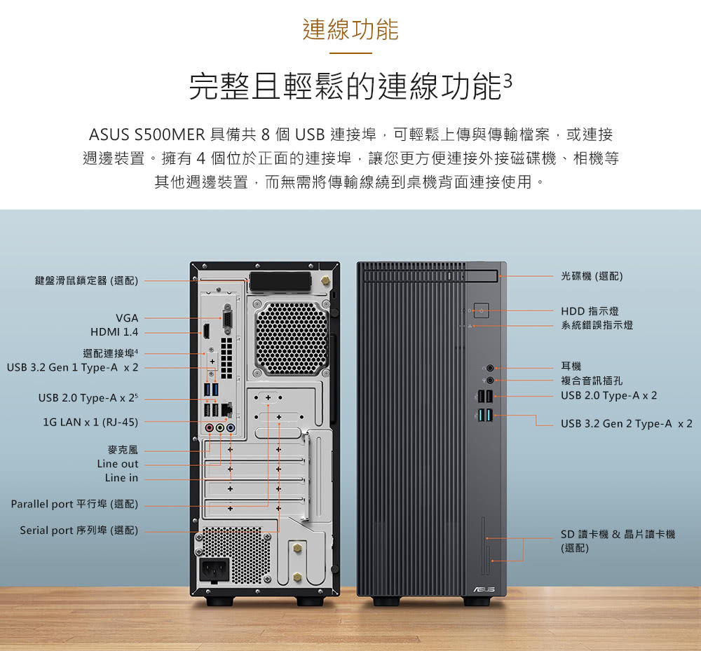 規格說明H-S503MER-0G6900003W處理器CPU:Intel G6900記憶體 8GB DDR5 U-DIMM硬碟:512GB M.2 2280 NVMe™ PCIe 4.0 SSD光碟機:無無線網路:Wi-Fi 6(802.11ax) (Dual band) 1*1 + Bluetooth☆ 5.2 Wireless Card電腦滑鼠:無電腦鍵盤:無作業系統:Windows 11 家用版 (64 bit)電源:180W power supply尺寸:15.50 x 29.60 x 34.70 cm重量:6.00 kg保固:原廠三年保固前端介面1x Headphone1x 3.5mm combo audio jack2x USB 2.0 Type-A2x USB 3.2 Gen 2 Type-A後端介面1x Headphone out1x Line-in1x MIC in1x RJ45 Gigabit Ethernet1x HDMI 1.41x VGA Port2x USB 2.0 Type-A2x USB 3.2 Gen 1 Type-A備註:以上規格僅供參考,如有任何問題,請依原廠公告為主。備註:鍵鼠組,螢幕連接線,需另外加購。*以上規格僅供參考,若有錯誤,請以原廠官網公布為準。< 文案中相關圖文及說明,僅供參考,規格配置依機型不同有所差異,請以實際商品為準 >