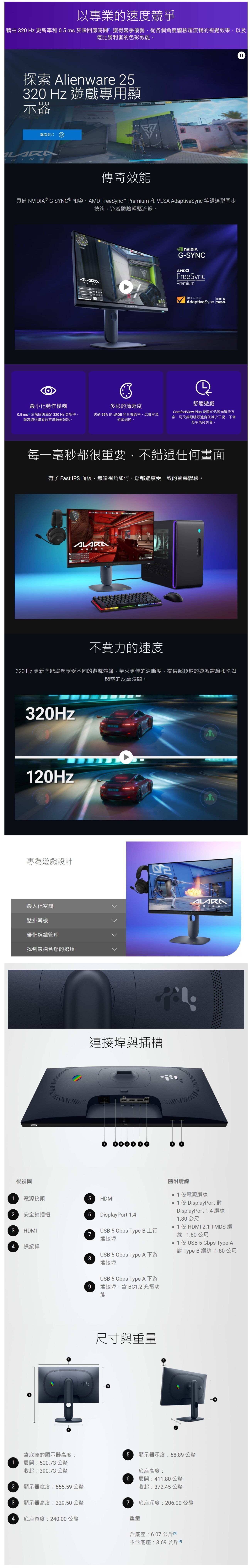 Alienware 25 320 Hz 遊戲專用顯示器 - AW2525HM