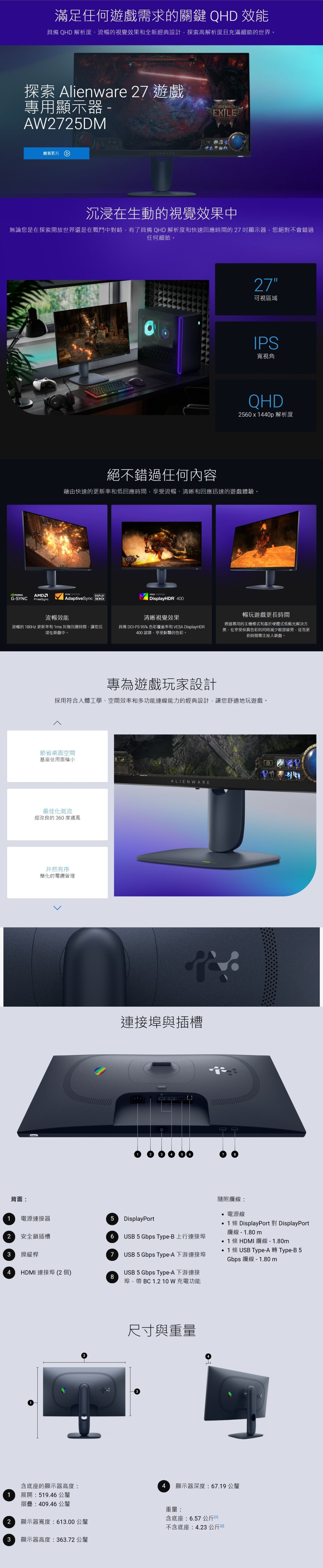 流暢的 180Hz 更新率和 1ms 灰階回應時間