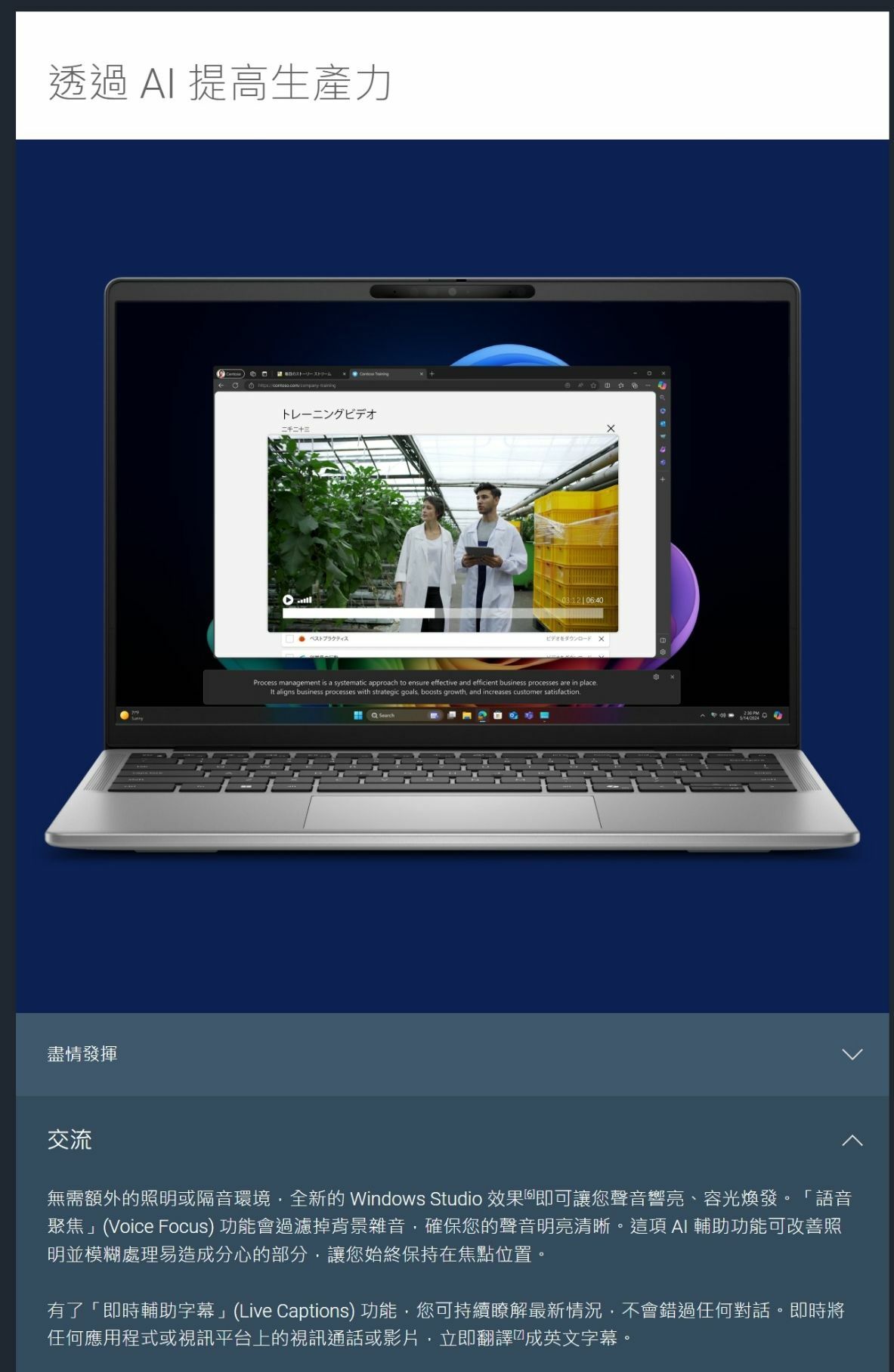 ▶ AI 專用晶片可改善電源效率、延長電池續航力,而且運作安靜無聲
