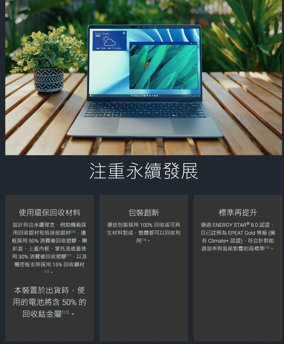 機箱:外部機箱材質- 50% 再生和 50% 低碳鋁質機箱