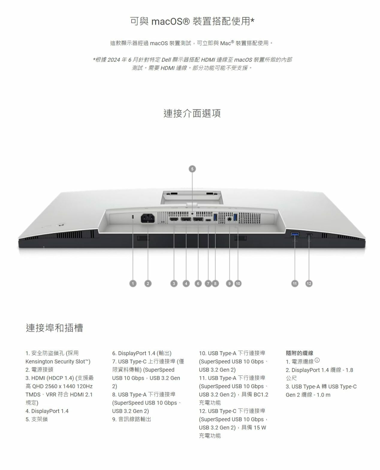 1 個 USB-C 下游連接埠 (USB 3.2 Gen 2 10 Gbps,15W)