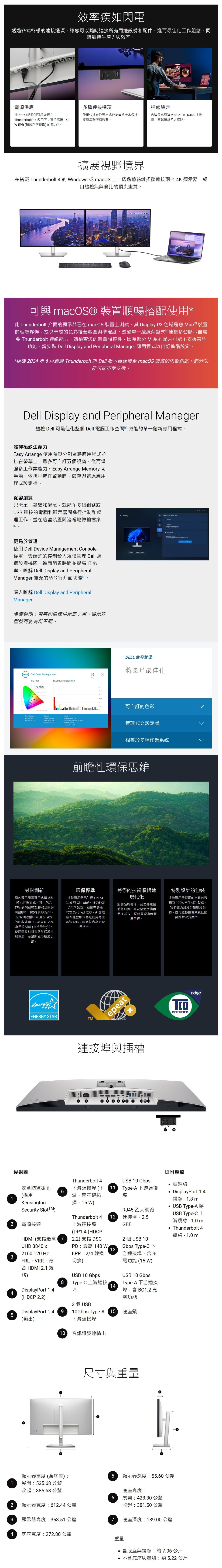 Dell UltraSharp 27 4K Thunderbolt Hub 顯示器 - U2725QE
