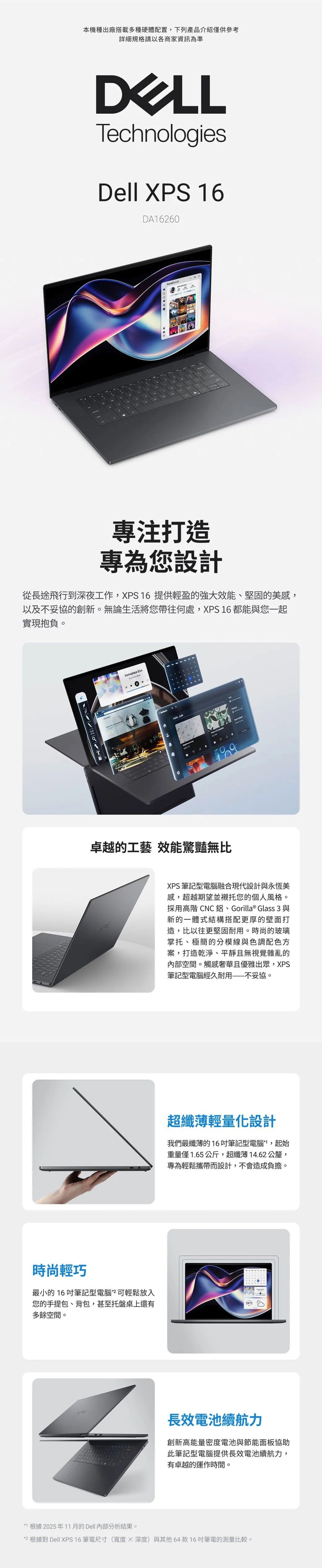 大螢幕、超纖薄高效能XPS 16 是創作者的終極畫布,在我們最纖薄的 16 吋筆記型電腦中提供高效能與長效電池續航力。