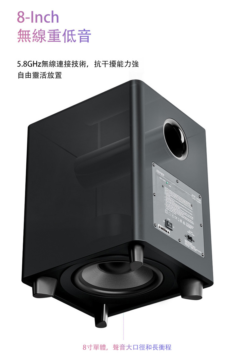 .8 英吋無線重低音 抗干擾能力強 打造家庭劇院