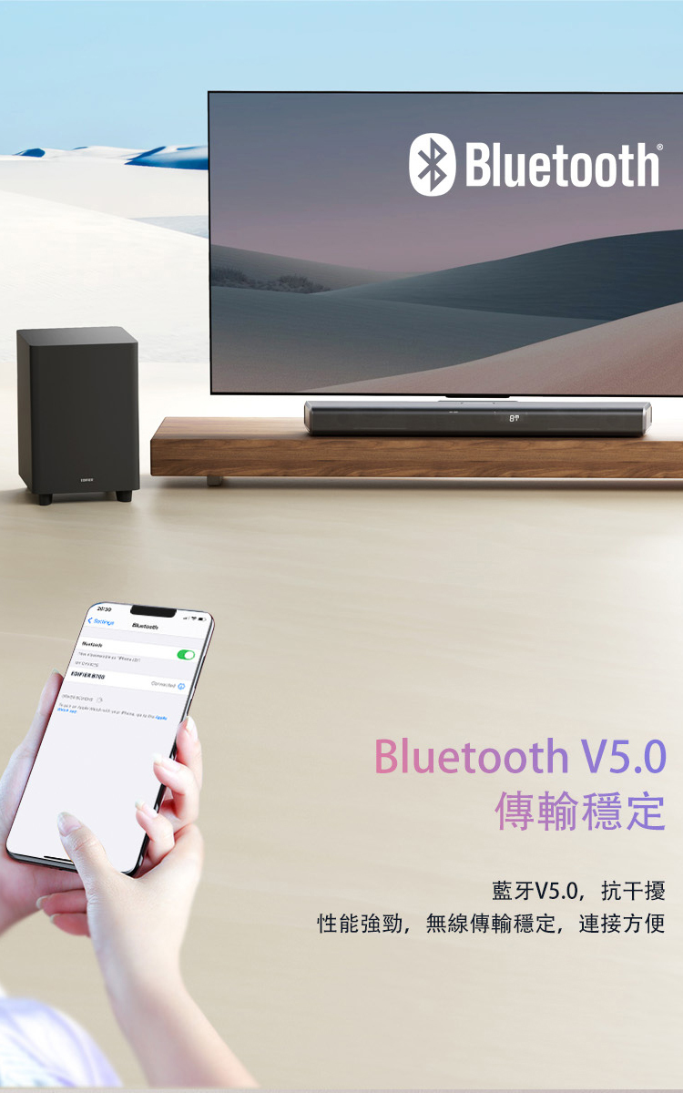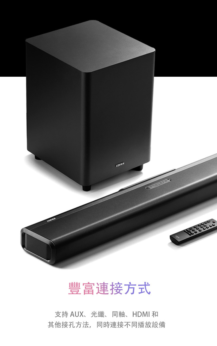 .多元連接:HDMIx2/光纖/同軸/藍牙/AUX/HDMI out(ARC/eARC)