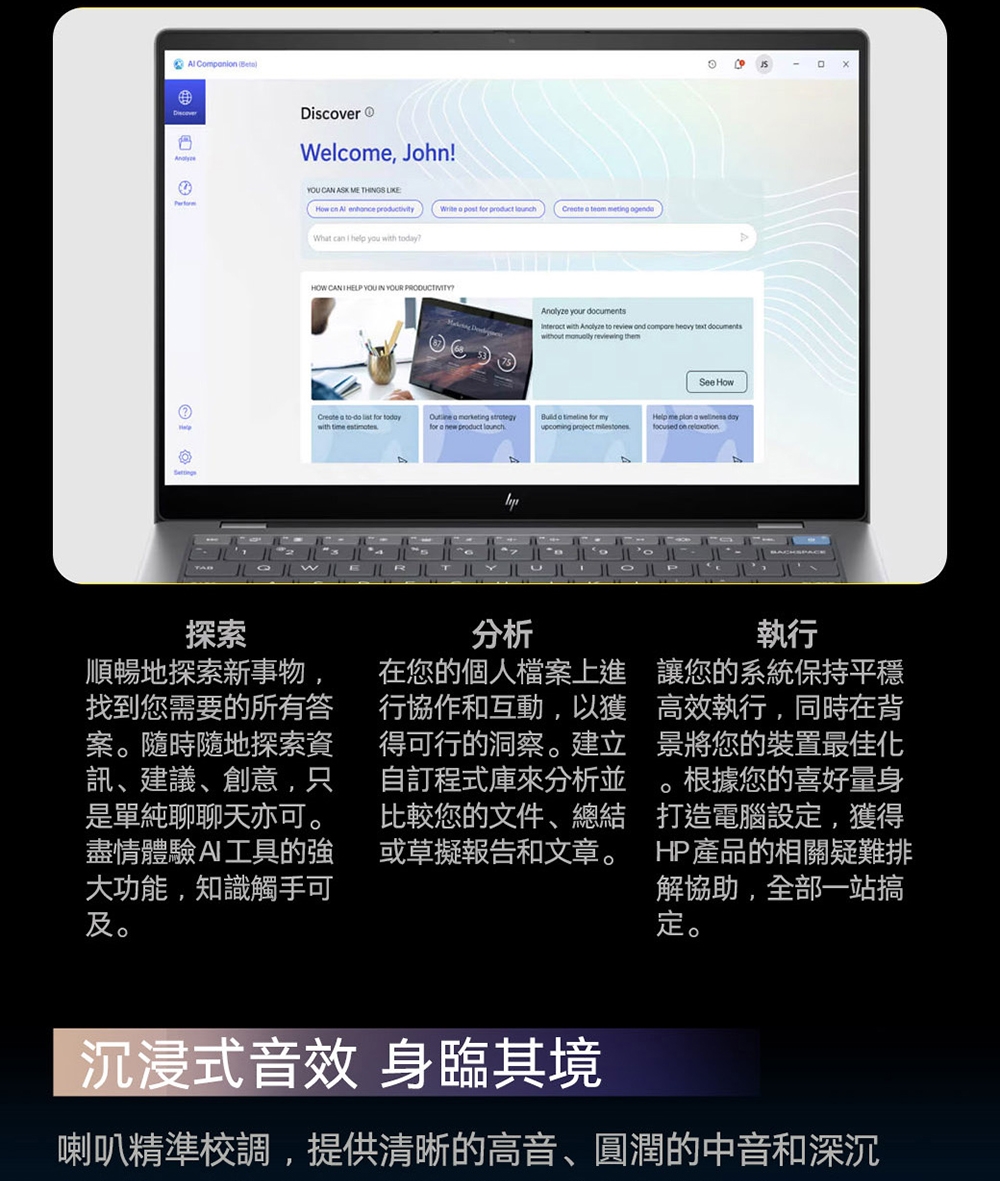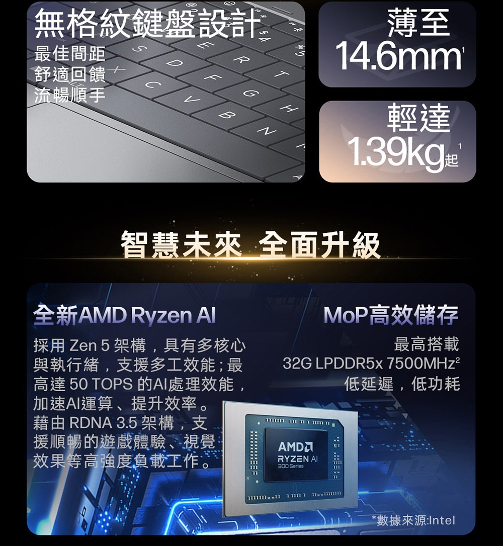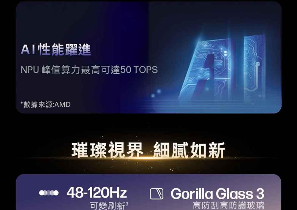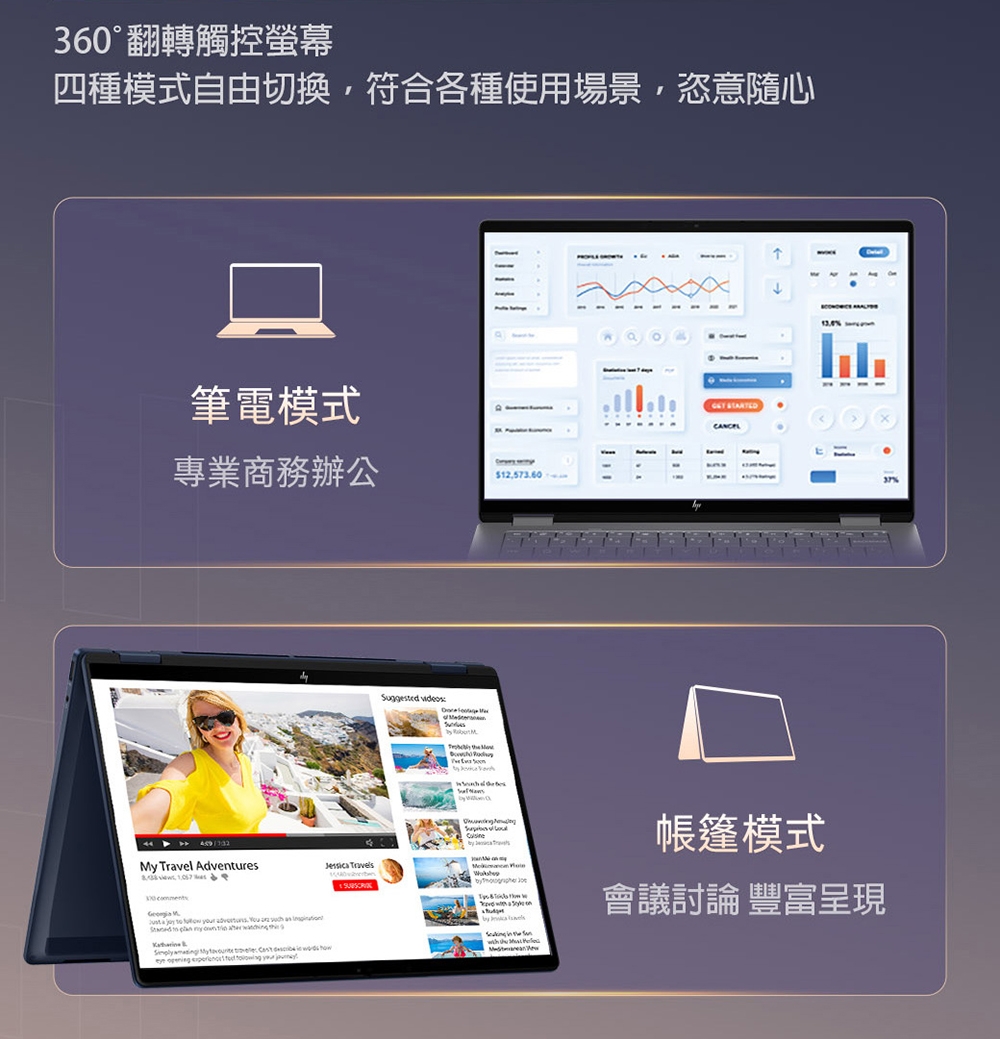<2025全新系列 - OmniBook X : Next Gen AI PC>• 14吋360度翻轉機身, 僅約1.41kg• 鋁合金A/C/D材質, 絲滑質感• 持續落實永續環保理念: 採用海洋回收塑料/再生金屬件/消費性回收塑料,應用於筆電之設計中 ; 並使用100%可回收包材, 可循環再利用<高效翻轉筆電>• AMD Ryzen AI 300系列處理器, TSMC四奈米技術, 50 NPU TOPS, 智慧效能表現再進化• 5MP廣視域AI鏡頭, 提供最佳的視訊品質• Poly Camera Pro, 提供背景/濾鏡/環境光源調整等功能, 即時優化視訊狀態<高規格螢幕表現>• 16:10 2.8K OLED螢幕, 大比例、高解析度、高畫質, 舒適且提升生產力• 極微邊框, 89.58%螢幕佔比, 視野寬廣無限• TUV + Eyesafe認證, 低藍光降低對眼睛的負擔, 同時維持色彩表現• DC調光不閃屏• 100% DCI-P3色域, 400nits高亮度, 色彩表現豐富• Corning® Gorilla® Glass 3, 強度增加, 降低螢幕磨損<優化使用體驗>• 舒適鍵盤打字回饋感, 流暢順手超有感• Poly Studio 音效, 體驗更舒適的聽覺享受• 支援電池快充技術, 最快30分鐘充達50%電力• TYPE-C支援PD快充• 箱內含type-c充電式4096階手寫筆[商品規格]HP OmniBook X FlipNGAI 14-fk0065AU 職人灰螢幕尺寸:"14""OLED2.8K(2880x1800)100%DCI-P3,400nitsSDR/500nitsHDR,TUV+Eyesafe,低藍光,不閃頻,VRR48-120Hz,0.2ms反應時間"螢幕比例:16:10玻璃:微邊框鏡面,Corning®Gorilla®Glass3觸控:Yes處理器:AMD Ryzen AI 7 350,TSMC4nm,8核心/16執行緒/50TOPS(2.0GHz,up to5.0GHz,16MBL3)重量:1.41kg尺寸:31.3x21.85x1.46cm晶片組:AMD integrationSoC記憶體:32GB LPDDR5x7500(onboard)/0/32G(無法升級)硬碟:1TB PCIeGen4NVMeM.2SSD繪圖:AMDRadeon™860MGraphics(支援FreeSyncPremiumPro)無線:Wi-Fi7(802.11be2x2),BT5.4電池:3cell59Whr充電器:65WType-C(快充30min至50%)光碟機:No攝影機:5MPIRWFOVAICam,TNR,物理鏡頭開關觸控板:Yes(多點觸控)數字鍵盤:No背光鍵盤:Yes(灰色)Copilot鍵:YesUSB-A:2x10GbpsUSB-C:1x40Gbps,1x10Gbps(支援PD/資料/DP2.1最高5K@60Hz)HDMI:HDMI2.1(最高支援4K@60Hz)Sleep充電:USB-C支援Miracast:Yes音效:PolyStudio+DualSpeakers,DTS:X®Ultra,HPBoost2.0(含獨立放大器)麥克風:雙陣列數位指紋辨識:No讀卡機:NoRJ45:No感應器:重力+陀螺儀+紅外線熱感測OS:Windows11Home保固:1年國際+1年台灣(含零件人工)/2年本島到府維修認證:EPEATGoldClimate+,ENERGYSTAR8.0附贈:Type-C充電式MPP2.0手寫筆(up to4096壓力階)