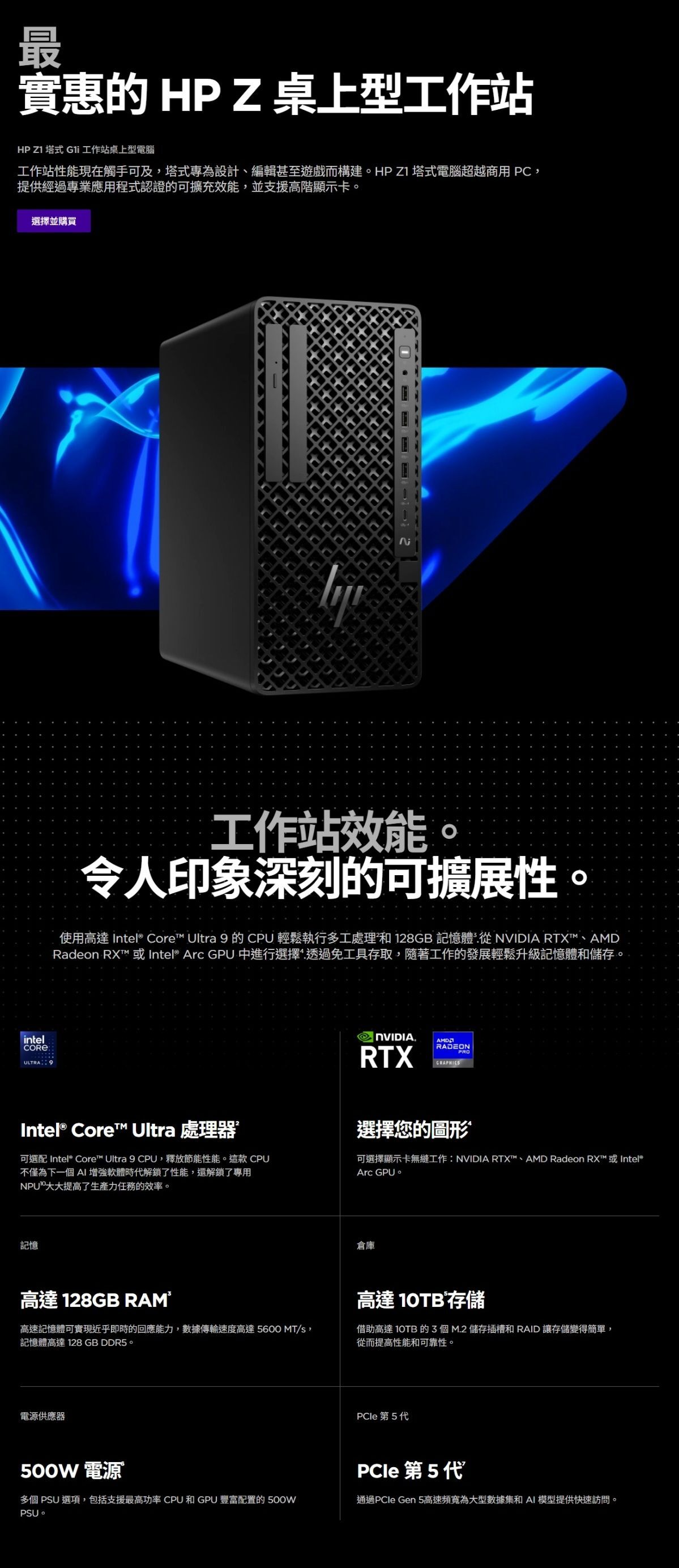 HP Z1 Tower 超越了商用 PC 的範疇,提供經過專業應用認證的可擴展效能,並支援高階圖形。