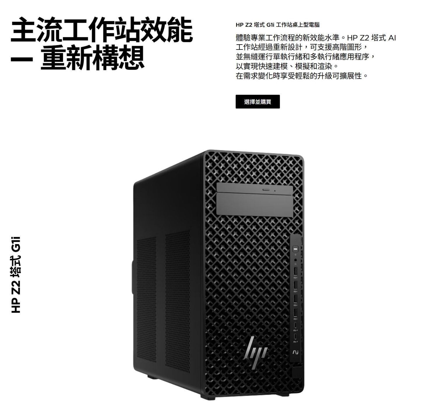 體驗專業工作流程的全新效能水準。 HP Z2 Tower AI 工作站經過重新設計,支援高端圖形並無縫運行單線程和多線程應用程序,