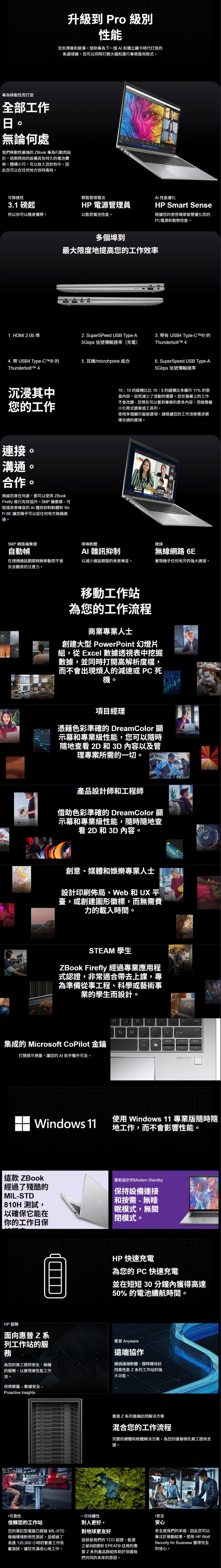 • 透過 Windows 11,以及 HP 協作與安全技術的支援,讓您工作時能擁有完整 效能。