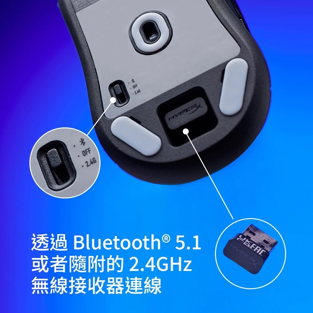 注意事項:以停用燈效、採用2.4GHz模式及1000Hz回報率,連續使用測試。電池續航視實際使用狀況而異。