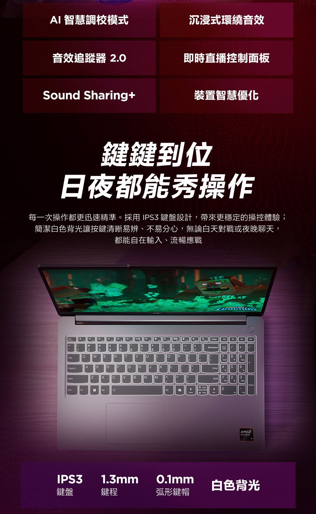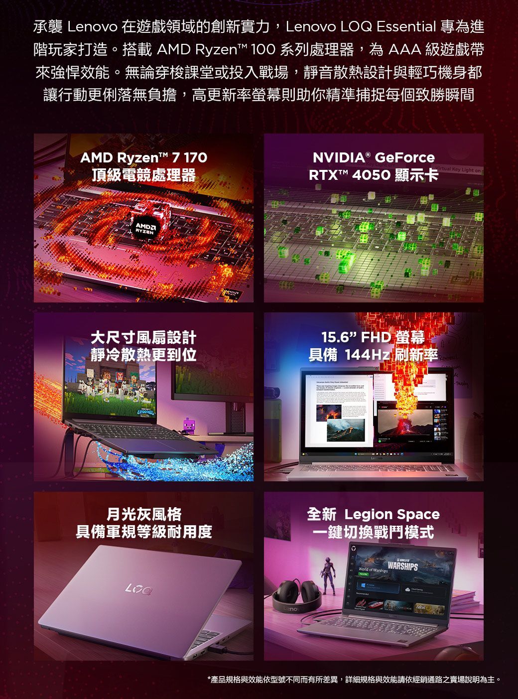 商品規格處理器:AMD Ryzen™ 7 170 (8C / 16T, 3.2 / 4.75GHz, 4MB L2 / 16MB L3)獨立顯示卡:NVIDIA GeForce RTX™ 4050 6GB GDDR6, Boost Clock 1605MHz, TGP 65W, 194 AI TOPS晶片組:AMD SoC Platform記憶體:16GB SODIMM DDR5-4800記憶體插槽:Two DDR5 SODIMM slots, dual-channel capable儲存裝置:512GB SSD M.2 2242 PCIe® 4.0x4 NVMe®儲存插槽:Two M.2 2242 PCIe® 4.0 x4 slots讀卡機:3-in-1 Card Reader音效晶片:High Definition (HD) Audio, Realtek® ALC3287 codec揚聲器:Stereo speakers, 2W x2, optimized with Nahimic Audio麥克風:2x, Array攝影機:HD 720p with Privacy Shutter電池:57.5Wh電源變壓器:135W Slim Tip (3-pin)顯示器:15.6" FHD (1920x1080) IPS 300nits Anti-glare, 100% sRGB, 144Hz, FreeSync™觸控螢幕:None螢幕佔比:88% AAR (active area ratio)色彩校準:No Color Calibration手寫筆:Pen Not Supported鍵盤:Non-backlit, Traditional Chinese外形尺寸(寬x深x高):359.2 x 236 x 19.9-22.95 mm (14.14 x 9.29 x 0.78-0.90 inches)重量:Starting at 1.8 kg (3.97 lbs)外觀顏色:Luna Grey外觀材質:PC-ABS (Top), PC-ABS (Bottom)作業系統:Windows® 11 Home, Traditional Chinese / Simplified Chinese / English隨附軟體:Office Trial無線區域網路 + 藍牙:Wi-Fi® 6, 802.11ax 2x2 + BT5.2無線廣域網路:WWAN Not Supported有線網路:100/1000M (RJ-45)標準輸入/輸出孔:2x USB-A (USB 5Gbps / USB 3.2 Gen 1)1x USB-C® (USB 5Gbps / USB 3.2 Gen 1), with PD 3.01x HDMI® 2.1, up to 8K/60Hz1x Headphone / microphone combo jack (3.5mm)1x Ethernet (RJ-45)1x Card reader1x Slim tip Power connector安全晶片:Firmware TPM 2.0 Enabled指紋辨識器:No Fingerprint Reader其他安全功能:Camera privacy shutter基本保固:1-year, Courier or Carry-in包含升級選項:2Y Premium Care -IPENTRY (ESS)貨源:公司貨*** 請注意:本機不含 Microsoft® Office 授權/需自行另購 ***以上規格僅供參考,若有錯誤,請以原廠官網公布為準