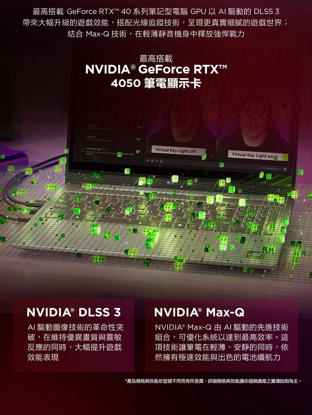 獨立顯示卡:NVIDIA GeForce RTX™ 4050 6GB GDDR6