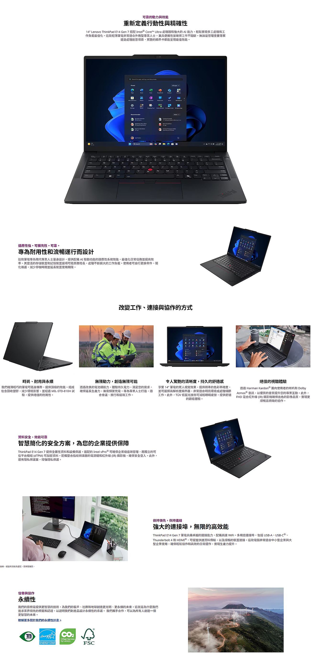 AI 驅動的筆電,專為外務型專業人士提供輕便耐用的設計ThinkPad E14 Gen 7 (14ʺ Intel)