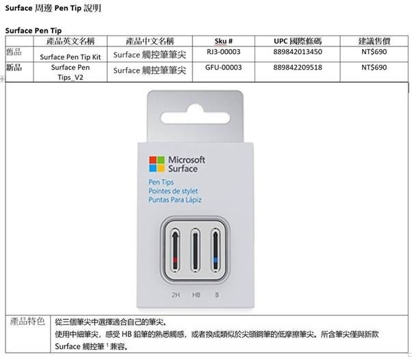 ●所含筆尖僅與新款 Surface 觸控筆1兼容。