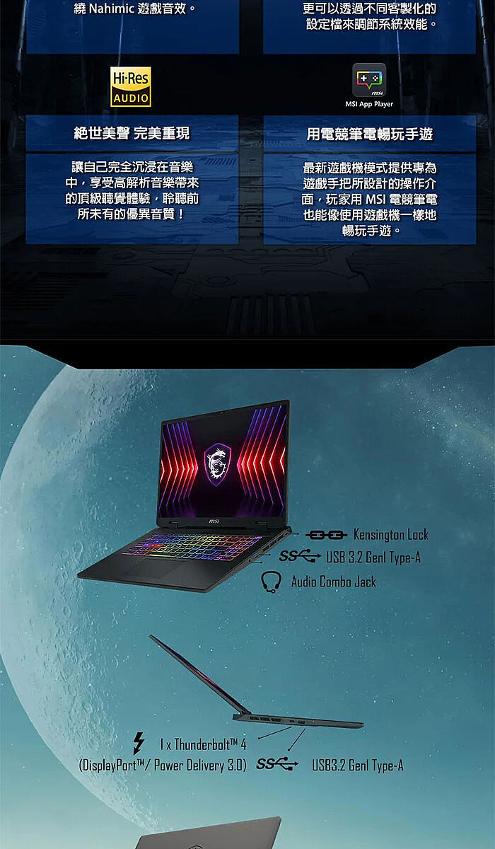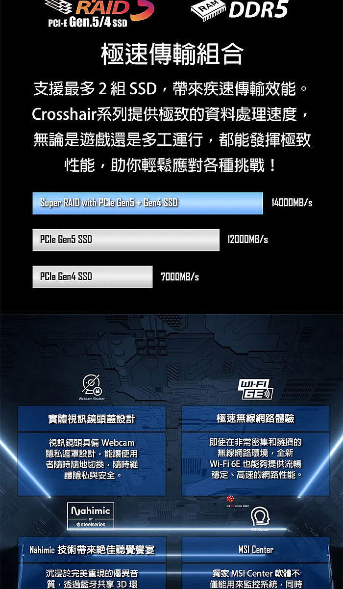 規格說明型號:Crosshair 17 HX AI D2XWFKG-010TW-GBU7255X16GXXDX11MA 黑螢幕:17” QHD+ (2560x1600), 240Hz, IPS-Level處理器:Intel Core Ultra 7 255HX (2.4GHz/Turbo 5.2GHz)(Cache 30MB)記憶體:16GB(16GB*1) DDR5-5600 ,2Slots ,Max 96GB硬碟:1TB M.2 SSD (NVMe PCIe Gen4)光碟機:無,需自行選購顯示卡:GeForce RTX 5060 Laptop GPU 8GB GDDR7作業系統:Windows 11 Home鍵盤:24-Zone RGB Gaming Keyboard網路攝影機:HD type (30fps@720p)3D Noise Reduction (3DNR)無線網路:Gb LAN 802.11 ax Wi-Fi 6E藍芽:Bluetooth v5.3音效:.2x 2W Speaker.1x Mic-in/Headphone-out Combo Jack連接:.1x Thunderbolt™ 4 (DisplayPort™/ Power Delivery 3.0).3x Type-A USB3.2 Gen1.1x HDMI™ 2.1 (8K @ 60Hz / 4K @ 120Hz).1x RJ45電池:4-Cell/ 90Whr Battery (Whr)/240W adapter尺寸:383.2 x 279.9 x 22.2-29.7 mm重量:2.8 kg保固:2年保固/台灣地區2年到府收送免費客服電話:0800-018-880BSMI商檢字號:R33008貨源:公司貨備註:以上規格僅供參考,如有任何問題,請依原廠公告為主。