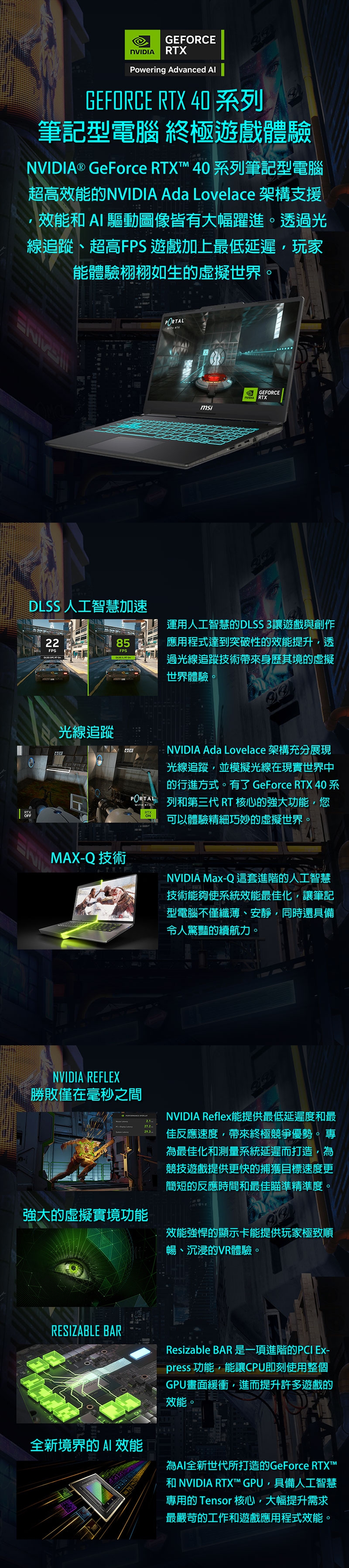 商品規格●公司料號:Cyborg 15 A2RVE-2094TW-TBC7240H16GXXDX11MH●國際條碼:4711377405881●螢幕尺寸及解析度:15.6" FHD (1920*1080),144Hz,IPS-Level●處理器:Intel Core 7 240H●主記憶體:16G (8G*2) DDR5,2 Slots●硬碟:512GB NVMe PCIe SSD●插槽:1x M.2 SSD slot●顯示晶片規格:GeForce RTX 4050 Laptop GPU 6GB GDDR6●作業系統:Windows 11 Home●視訊鏡頭:HD type (30fps@720p)●鍵盤/輸入裝置:Single Backlit Keyboard (Blue) with Copilot Key●支援網路:Gb LAN802.11 ax Wi-Fi 6E + Bluetooth v5.3●音效:2x 2W Speaker1x Mic-in/Headphone-out Combo Jack●I/O 連接埠:1x RJ451x Type-C (USB3.2 Gen2 / DisplayPort™)2x Type-A USB3.2 Gen11x HDMI™ 2.1 (4K @ 60Hz)●電池:3-Cell53.5 Battery (Whr)●變壓器:120W adapter●尺寸 (WxDxH):359.36 x 250.34 x 21.95-22.9 mm●重量 (w/ Battery):1.98 kg2年保固台灣地區2年到府收送免費客服電話0800-018880貨源:公司貨*** 請注意:本機不含 Microsoft® Office 授權/需自行另購 ***以上規格僅供參考,若有錯誤,請以原廠官網公布為準