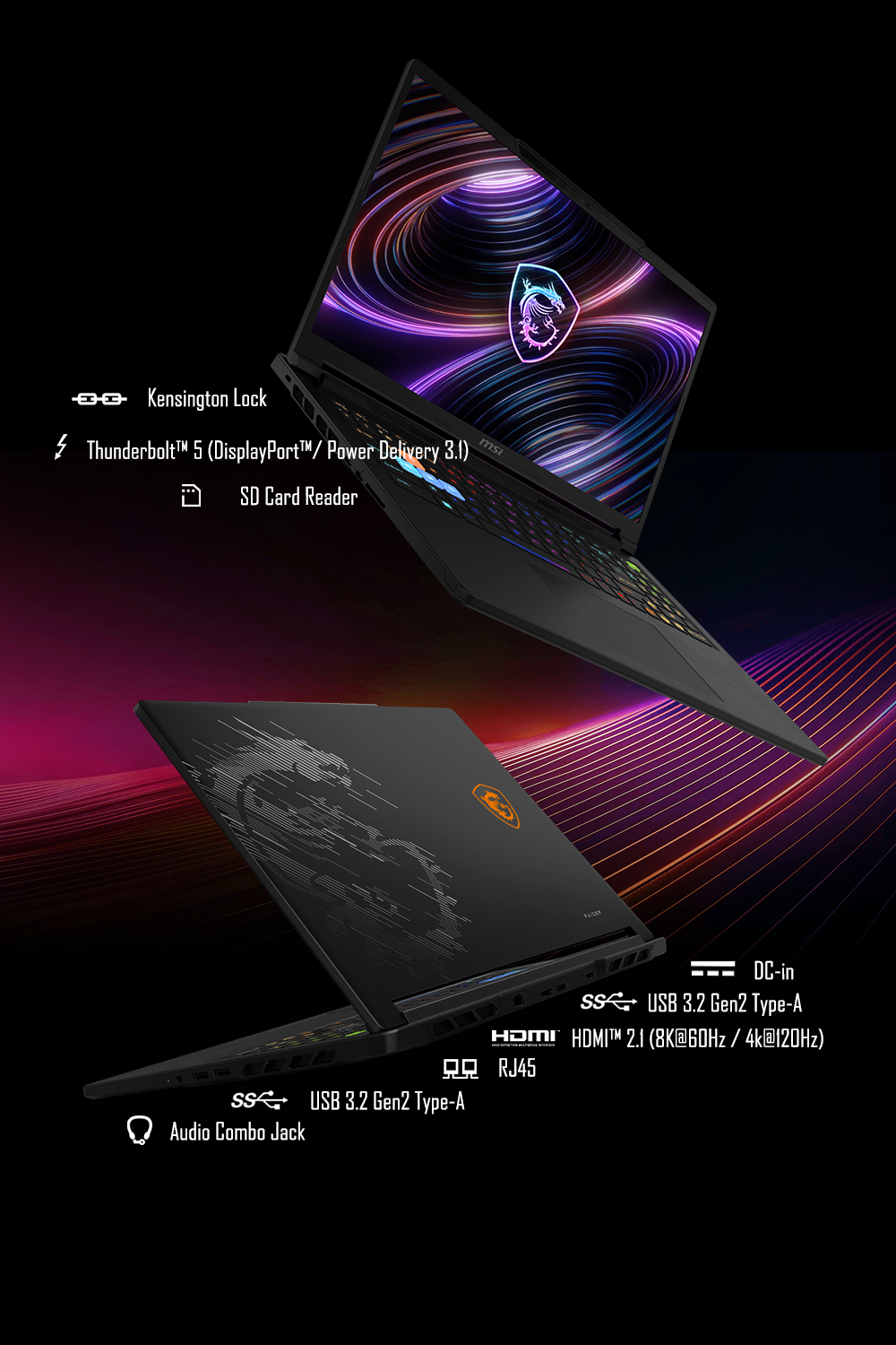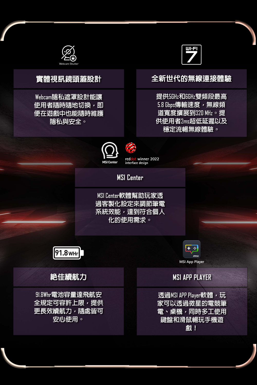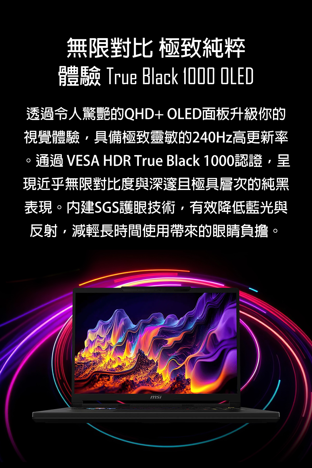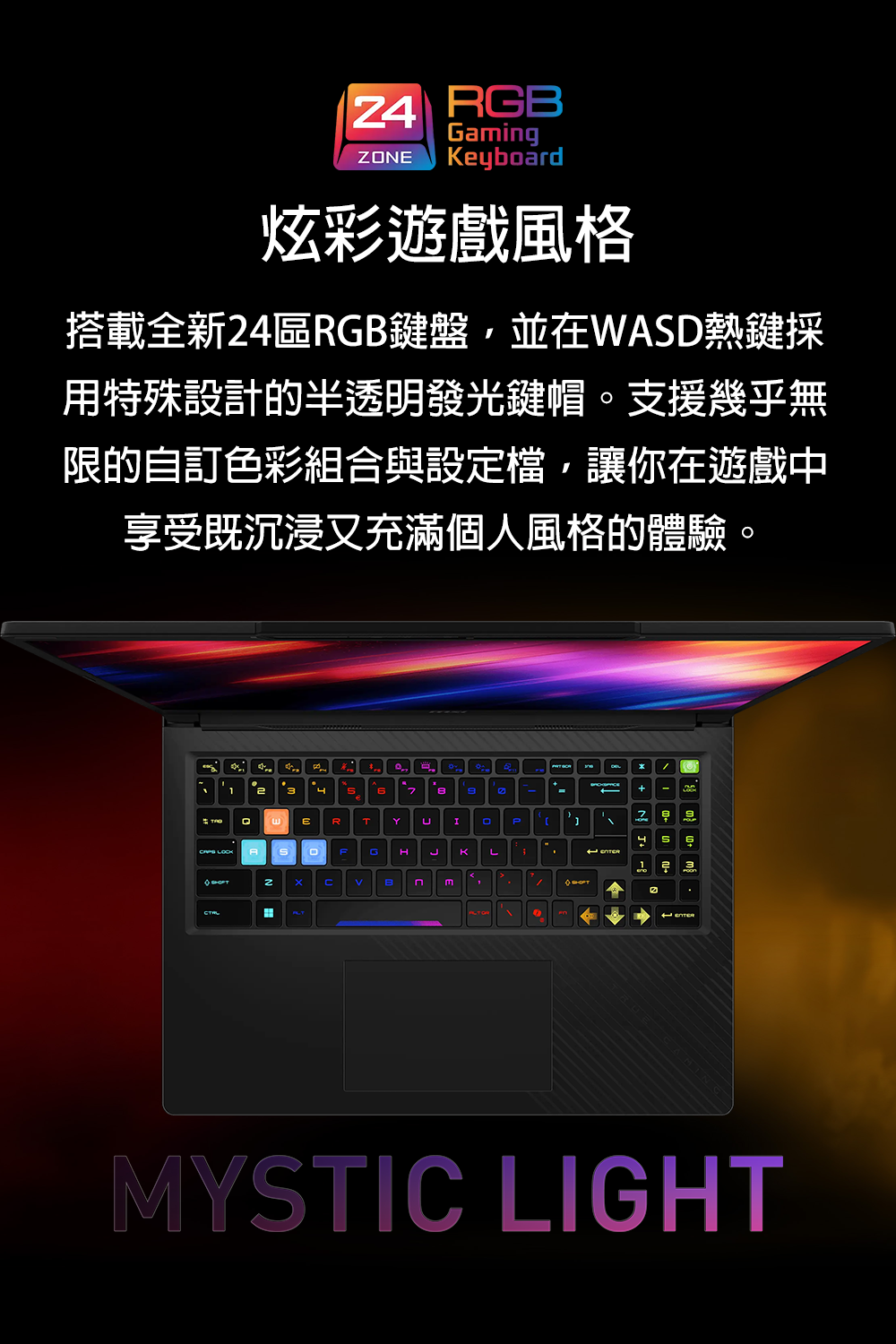 商品規格處理器:Intel® Core™Ultra 9 275HX (2.7GHz/Turbo 5.4GHz)(Cache 36MB)顯示卡:GeForce RTX™ 5070Ti Laptop GPU 12GB GDDR7記憶體:16GB DDR5-5600 / 共2個插槽,已使用1個,最高支援128G硬碟:1TB M.2 SSD (NVMe PCIe Gen4) / 共2個插槽,已使用1個螢幕:16” QHD+ (2560x1600), 240Hz, 100% DCI-P3, IPS-level panel光碟機: NO作業系統:Windows 11 Home無線規格:Intel® Killer™ BE Wi-Fi 7 + Bluetooth 6鍵盤規格:24-Zone RGB Gaming Keyboard with Copilot Key Smudge-resistant keyboard視訊鏡頭:IR FHD type (30fps@1080p) with HDR Webcam 3D Noise Reduction+ (3DNR+) Webcam FeatureIO介面:1x RJ452x Thunderbolt™ 4 (DisplayPort™/ Power Delivery 3.1)3x Type-A USB3.2 Gen21x SD (XC/HC) Card Reader1x HDMI™ 2.1 (8K @ 60Hz / 4K @ 120Hz)1x Mic-in/Headphone-out Combo Jack尺寸:363 x 269.7 x 21.95 - 25.85 mm mm重量:2.45 kg變壓器:330W adapter電池:4-Cell 91.8 Battery (Whr)保固:2年保固/台灣地區2年到府收送/免費客服電話0800-018880貨源:公司貨*** 請注意:本機不含 Microsoft® Office 授權/需自行另購 ***以上規格僅供參考,若有錯誤,請以原廠官網公布為準