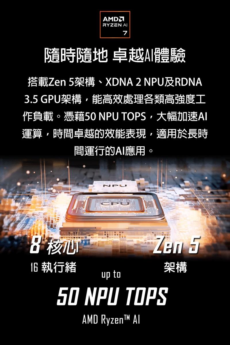 處理器:AMD Ryzen AI 7 350 (2.0GHz/Turbo 5.0GHz)