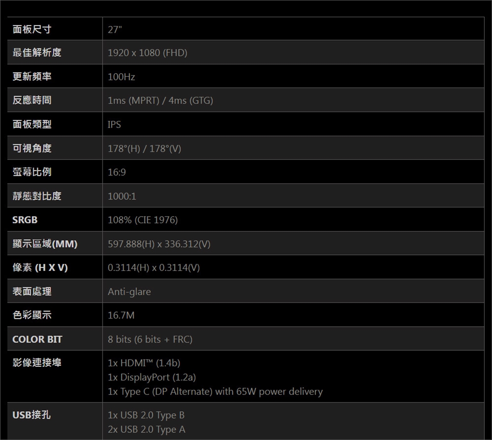 27吋IPS面板設計/ FHD解析度/ 178° 寬視角
