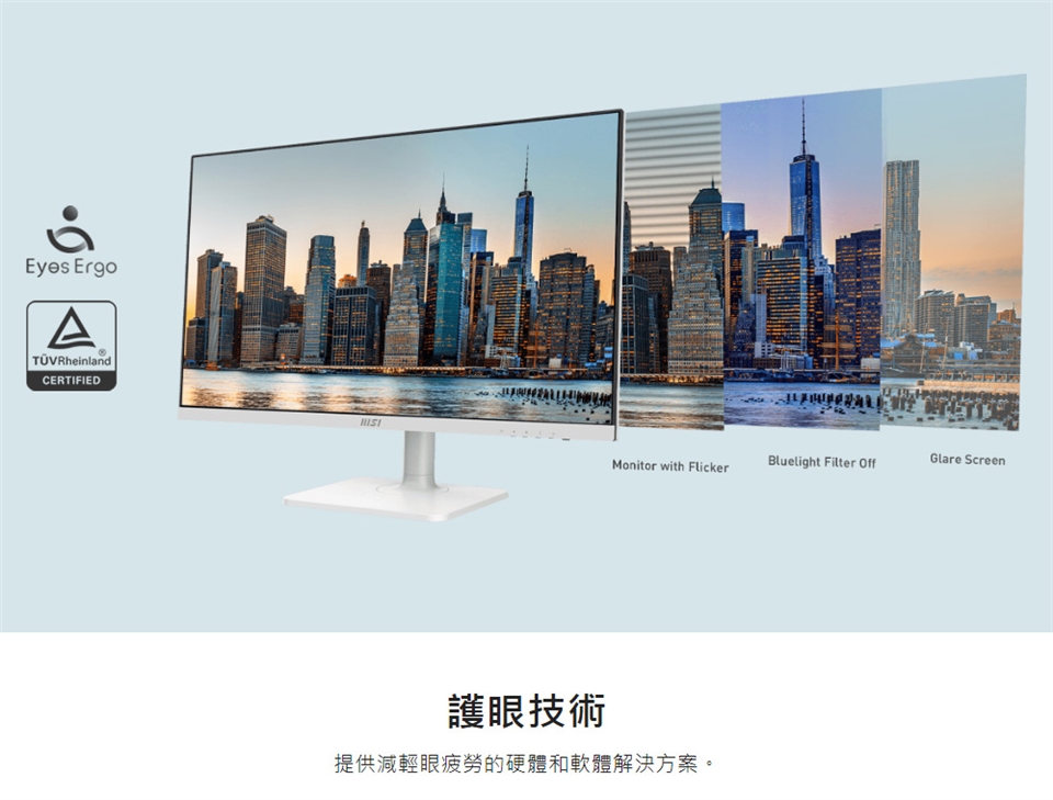 MSI EyesErgo、防閃爍技術有助於防止眼睛疲勞