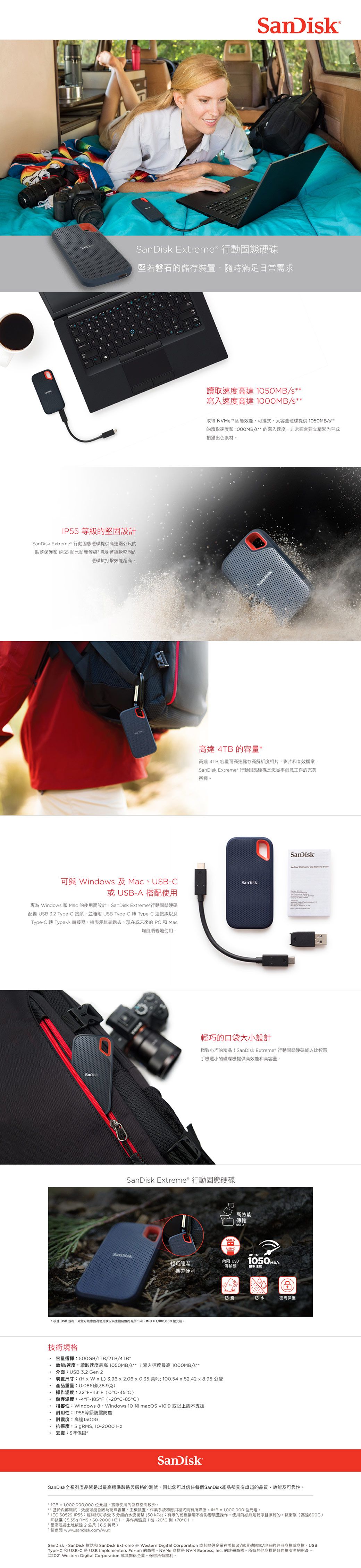 超快連續讀/寫速度: 1050MB/s/1000MB/s