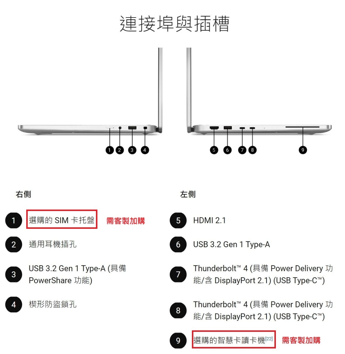1 個 USB 3.2 Gen 1 Type-A 連接埠 (具備 PowerShare 功能)