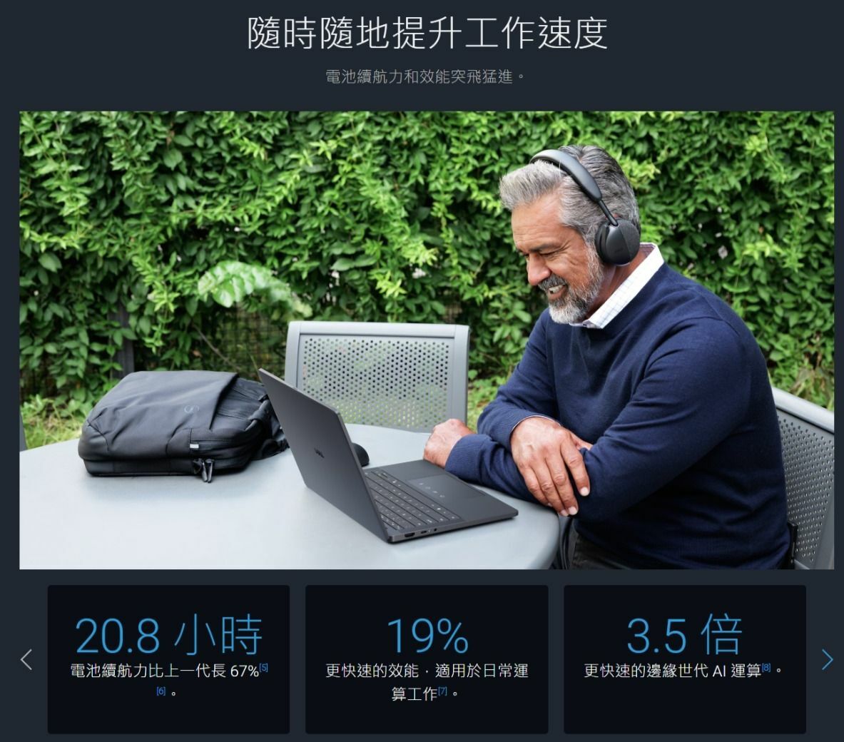 處理器:Intel® Core™ Ultra 7 268V vPro® Enterprise (12 MB 快取,8 核心,8 執行緒,最高 5.0 GHz)