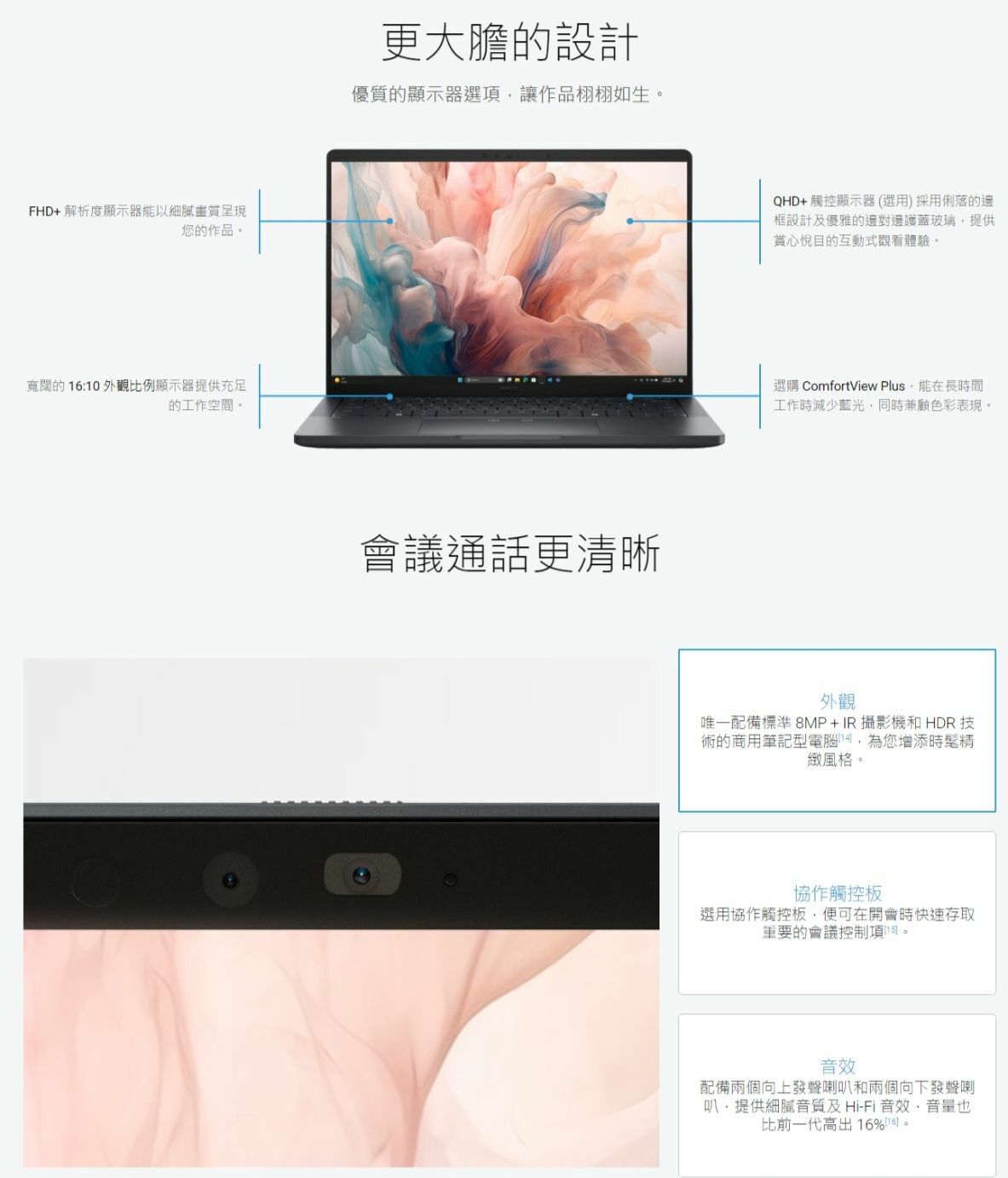 螢幕面板: 13.3吋,觸控,QHD+ 2560x1600,60Hz,IPS,500 尼特,100% sRGB,低耗電,ComfortView Plus